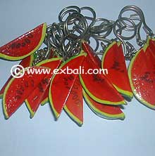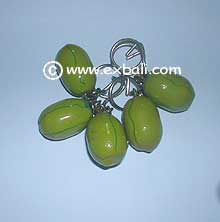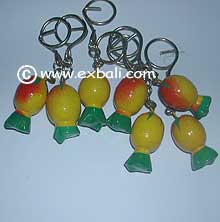 PAINTED WOODEN FRUIT KEY-RINGS Realistic fruits carved from Albesia wood and hand painted in life like colors. Great for Gifts or Giveaways