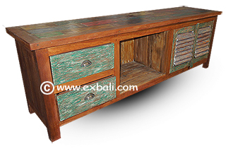 Recycled Indonesian teak boat timbers recycled and re-purposed into colorful sea seasoned furniture