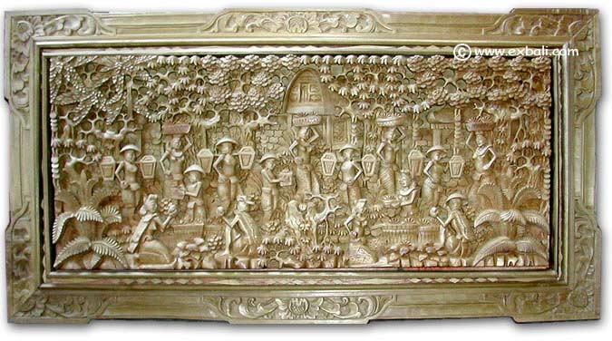 RELIEF CARVING: These traditional Balinese Carved Wall relief's  are storyboards of legend and myth relating to Balinese culture.
