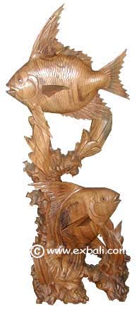 FISH WOOD CARVING. Being an island , Bali's coast is abundant with reefs and sea life. Woodcarvers create  intricate carvings depicting almost every sea creature